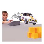 Coche desmontable con piezas eyectables y una figura de Stu. Incluye un disparador en el parachoques, puede rodar, saltar o chocar contra 5 cajas incluidas ¡y al impactar el coche se desarma!