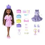 Ayuda a Barbie “Malibu” y Barbie “Brooklyn” a prepararse para una divertida noche: ¡es hora de su Glam! La muñeca GET READY WITH BARBIE™ Barbie “Brooklyn” Dream Besties anima a las niñas a expresar cómo se sienten a través de la moda y la diversión. ¡Ayuda a Barbie a prepararse con su bata y su mascarilla de pepino para relajarse antes de salir! Abre sus tubos rizadores para descubrir divertidas sorpresas, como tiza para el cabello y un moño gigante. Barbie puede usar su bata mientras se peina, y después ponerse su vestido brillante cuando esté lista. ¡Y para darle los últimos retoques a su look, puede usar su paleta de maquillaje y sus accesorios de brochas! Las muñecas Barbie Dream Besties inspiran a las niñas de 4 años en adelante a vivir sus sueños. La muñeca no se sostiene por sí sola. Los colores y decoraciones pueden variar.