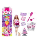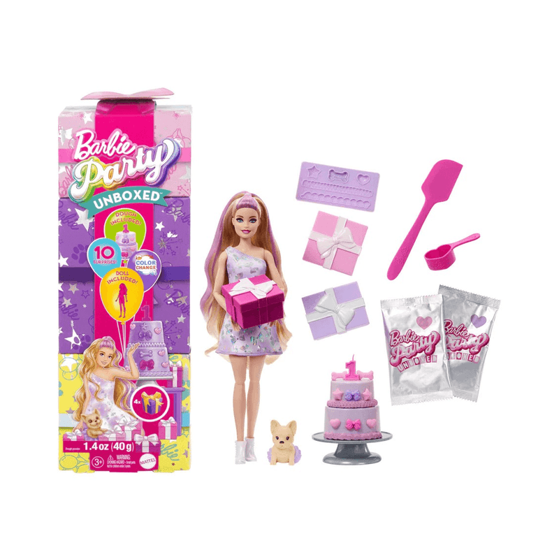 Barbie Reveal Party Unboxed Fiesta de Mascotas Sorpresa ofrece una divertida aventura sensorial con diez increíbles sorpresas dentro de un empaque con temática de regalos y fiestas de cumpleaños para mascotas. Revela una sorpresa tras otra; el set incluye una muñeca, Lazos de Cumpleaños, Corazones Brillantes o Estrellas de Fiesta. Sigue abriendo los regalos para encontrar fabulosos looks de fiesta, una adorable mascota con su ropita y utensilios para decorar pasteles. Los pequeños artistas pueden usar la masa, los moldes y todos los utensilios para decorar el pastel de cumpleaños de dos pisos y preparar todo para la fiesta de cumpleaños para las mascotas. Las sorpresas continúan con la muñeca y la mascota y sus caritas que cambian de color con agua helada y caliente, una y otra vez. Los niños y las niñas la pasarán en grande con la colección Party Unboxed Fiesta de Mascotas Sorpresa; pueden coleccionarlos todos para que la diversión nunca termine. Cada set se vende por separado y está sujeto a disponibilidad. La muñeca no se puede mantener de pie por sí sola. Los colores y las decoraciones pueden variar.