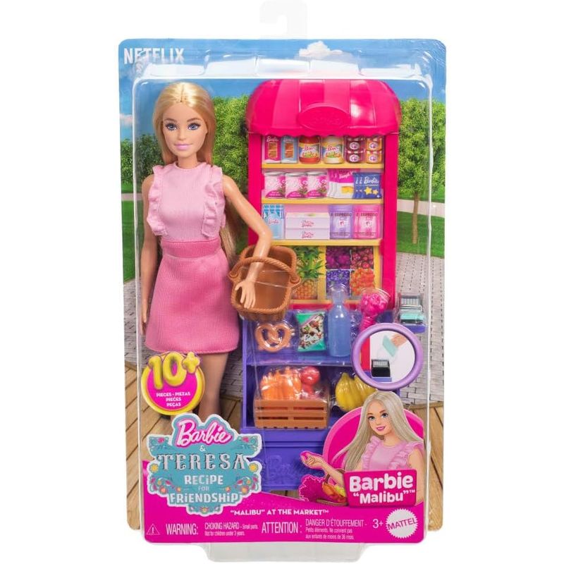 Los niños están a cargo de la lista de compras cuando acompañan a Barbie "Malibu" al supermercado con este set de juego que incluye 1 muñeca, 1 supermercado más.