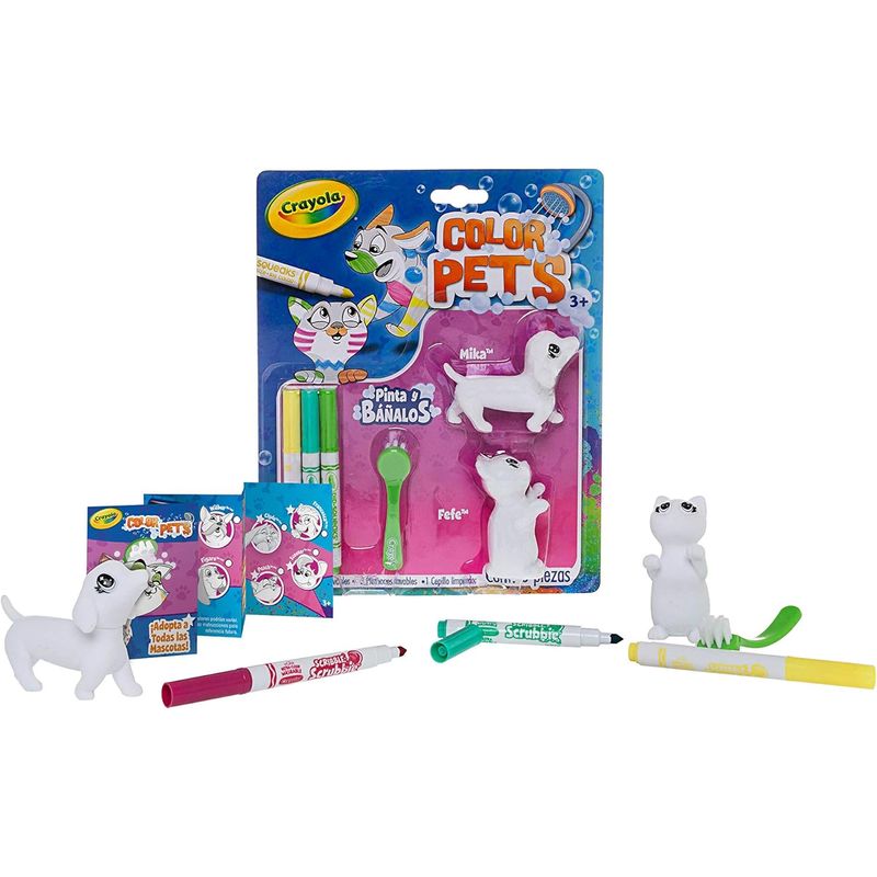 Este pack contiene a Mika y Fefe, dos mascotas lavables para que los niños las decoren y jueguen. Incluye plumones lavables para una experiencia creativa y divertida.