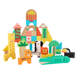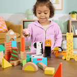 Los pequeños pueden disfrutar horas de diversión y construcción salvaje con el set de juego Animalitos de la Jungla de Madera de Fisher-Price. Este set de construcción con temática de animalitos incluye 50 bloques de colores fabricados con madera procedente de fuentes bien gestionadas y certificadas por el Forest Stewardship Council (FSC-N004566). Los niños pueden apilar y construir 6 animales exóticos diferentes, incluyendo un cocodrilo, una jirafa, un león, una cebra, un tucán y un tigre, junto a sus hábitats correspondientes. ¡Los niños pueden mezclar y combinar los bloques para construir nuevos seres y momentos divertidos! Los colores y las decoraciones pueden variar.