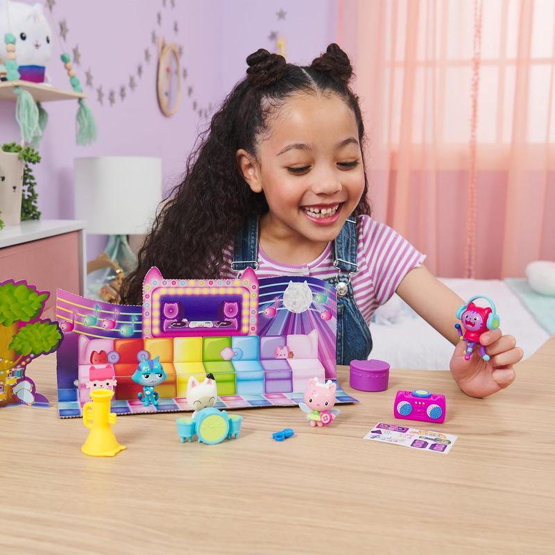 Gabby's Doll House Fiesta Musical Set de 6 Figuras y Accesorio Sorpresa permite a los niños entrar en el mágico mundo de Gabby y sus amigos. Con personajes adorables y un accesorio sorpresa, este set invita a los pequeños a recrear sus momentos favoritos de la serie y a crear sus propias historias llenas de música y diversión. Perfecto para niñas a partir de 3 años, este juguete seguro y duradero es un regalo ideal para cualquier ocasión, fomentando la creatividad y la coordinación en cada juego.