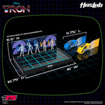 • 2 Tron Light Cycles con asientos de figura con precisión de pantalla y paredes de luz extraíbles