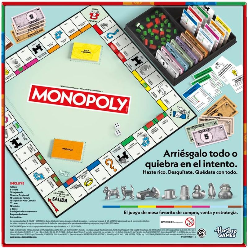 ¡Arriésgalo todo o quiebra en el intento en el juego de mesa Monopoly! En esta edición del divertido juego de mesa para toda la familia, diviértete jugando el clásico juego que tanto adoran los fans; ahora con características mejoradas. Hemos incluido una elegante bandeja de almacenamiento para guardar el dinero, las tarjetas y los componentes de manera organizada. También hemos aumentado el tamaño de los tokens, casas y hoteles comparados con los de las ediciones anteriores para facilitar el manejo de estos componentes. Los jugadores recorren el tablero comprando todas las propiedades que puedan. Mientras más posean, más renta podrán cobrar de los demás. ¡El último con dinero, cuando ya los demás estén en bancarrota, será el ganador! ¿Buscas juegos divertidos para una noche de juegos? Este juego de mesa familiar para niños y adultos es una fantástica opción. Los juegos Monopoly y los juegos familiares para niños y adultos también son regalos fantásticos.