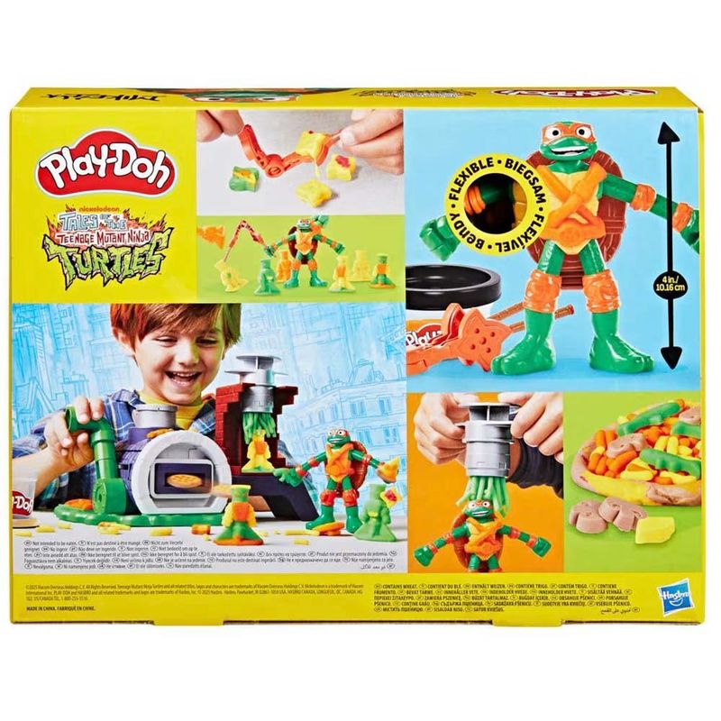 ¡Baja a las alcantarillas para celebrar la fiesta de pizzas Play-Doh más loca con el set de juego Teenage Mutant Ninja Turtles Horno lanzapizzas de Play-Doh! Miguel Ángel necesita ayuda para entrenarse para su próxima aventura, así que ¿por qué no lanzarle pizzas de comida de juguete a muñecos de entrenamiento? Simplemente coloca la masa para pizza Play-Doh en la rejilla de la alcantarilla, tira de la palanca para cortar la masa dentro del playset TMNT y presiona el botón de la parte trasera para lanzarla. Una variedad de moldes de Play-Doh ayudan a los niños a crear accesorios Play-Doh para la figura de acción de Miguel Ángel. Este kit de Play-Doh es un regalo perfecto para los niños y niñas que adoran los juguetes de las Tortugas Ninja y las manualidades. Edad recomendada: A partir de 4 años.