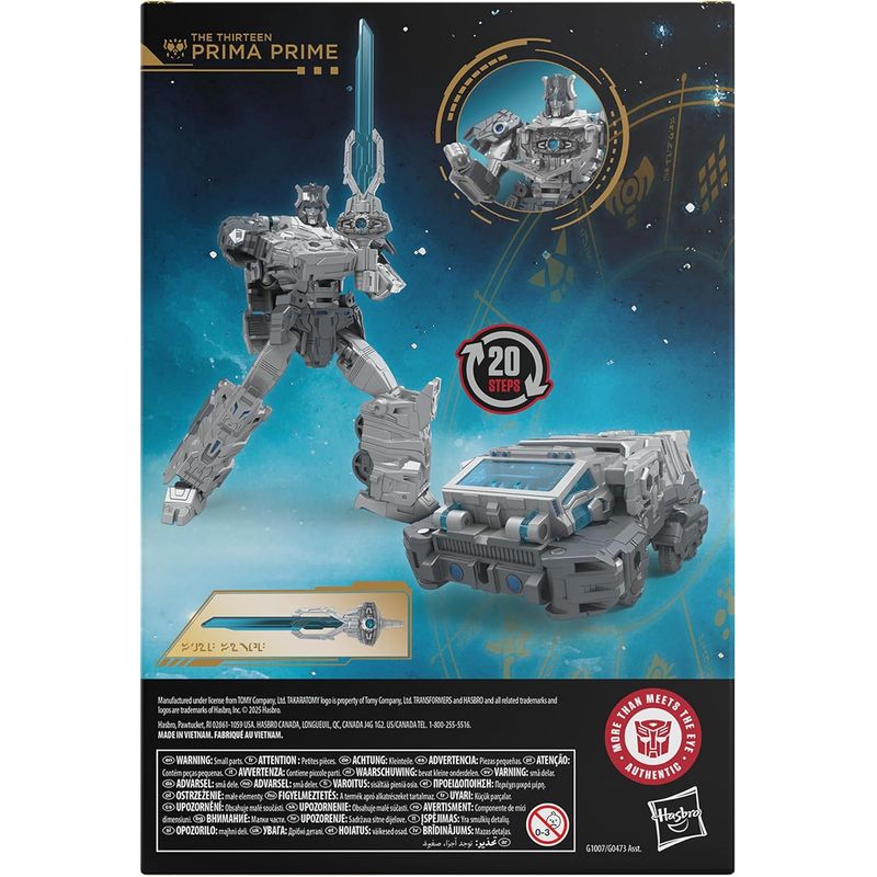 ¡Reúne a tus personajes favoritos del mundo de los robots Transformers incorporando a tu colección la figura The Thirteen Prima Prime clase viajero de Transformers Age of the Primes! Esta figura de acción The Thirteen Prima Prime de 17,5 cm se convierte de robot en camión cybertroniano en 20 pasos. Incluye espada Sable Estelar y Matriz de Liderazgo. La figura The Thirteen Prima Prime está inspirada en el personaje del universo Transformers y cuenta con cabeza, brazos y piernas articulados para que la coloques en increíbles poses de acción. Transformers: Age of the Primes revela el mundo de los Primes, los primeros robots de la mitología Transformers, un panteón de Trece seres caracterizados por sus personalidades y habilidades singulares. Cada batalla, cada robot y cada poder en el universo Transformers se remonta a uno de Los Trece. Colecciona y combina los distintos personajes para crear tu reparto ideal de Age of the Primes.
