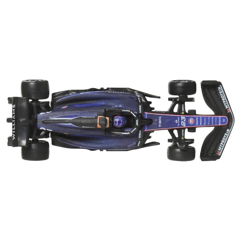 El Hot Wheels Premium Williams Racing FW46 (#23) reproduce la librea 2024 a escala 1:64. Su carrocería y chasis Metal/Metal y las llantas Real Riders aportan realismo y presencia. Incluye base para exhibición y empaque coleccionable pensado para vitrina o colección sellada. Mide aproximadamente 7.6 cm (3 in) y luce detalles definidos en alerones y pontones. Ideal para completar dioramas o formar tu parrilla a escala junto a otras escuderías. Recomendado para coleccionistas de 18 años en adelante. Los estilos, colores y decoraciones pueden variar; cada vehículo se vende por separado y está sujeto a disponibilidad. Pieza de colección premium.