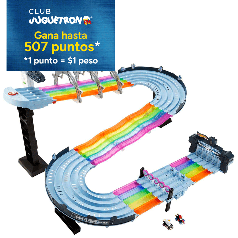 La Pista de 5 Carriles de Mario Kart de Hot Wheels permite competir a lo grande. Ideal para carreras rápidas y llenas de acción, es perfecta para recrear la emoción de Mario Kart con amigos y ver quién llega primero a la meta. ¡Diversión garantizada!