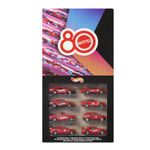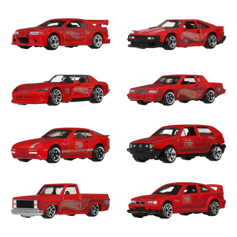 Celebra el 80º aniversario de Mattel con este paquete de 8 vehículos de juguete de metal a escala 1:64. El set incluye modelos nostálgicos de los años 80 y 90, como una Chevy Silverado 1983, un Toyota Supra 1982, un Buick Regal GNX 1987 y un BMW E36 M3 de carreras. Cada uno cuenta con una decoración conmemorativa especial para resaltar este gran hito del fabricante de juguetes, e incluye dos vehículos completamente de zinc para mayor valor coleccionable. El empaque del 80.º aniversario destaca la ocasión histórica y es perfecto tanto para guardar como para exhibir los autos. Los colores y decoraciones pueden variar.