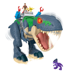 ¡Los pequeños fans de Jurassic World rugirán junto al Imaginext Ultimate Action Chomp T-Rex de Fisher-Price, que combina luces, sonidos, movimiento y acción! Con una altura de 46 cm y un largo de 76 cm, este enorme dinosaurio ruge y retumba, mueve la cabeza, tiene ojos que se iluminan, lanzadores removibles y puede sujetar figuras de 7,5 cm en su boca: incluye una figura humana y una figura de dinosaurio para comenzar a jugar desde el primer momento. La acción se activa con el gatillo en la cola o con el Power Pad en la parte superior, ambos fáciles de usar para manos pequeñas y perfectos para ayudar a desarrollar habilidades motrices finas. La lengua de textura realista añade un toque sensorial extra a la diversión. Los niños pueden recrear escenas de Jurassic World Rebirth o imaginar nuevas historias. Los fans de los dinosaurios y la acción disfrutarán de un juego lleno de aventuras. Los colores y las decoraciones pueden variar.