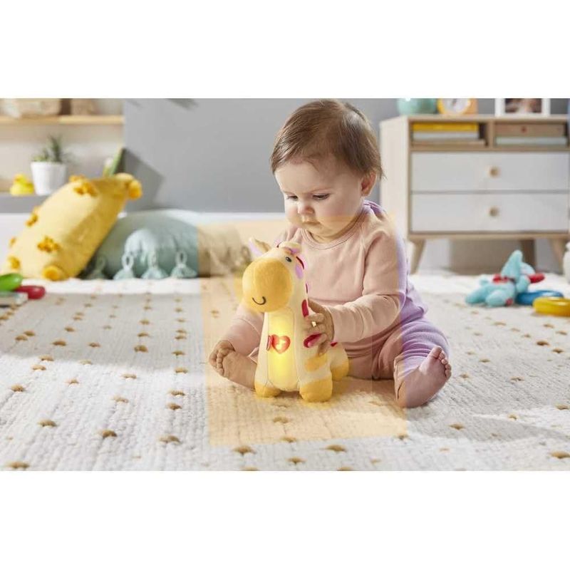 La Jirafa Abrazable de Fisher-Price emite un brillo suave y música relajante. Perfecta para acompañar al bebé, promueve el descanso y ofrece compañía en cada abrazo.