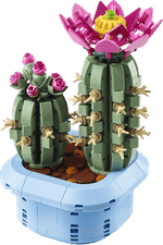 ¡Diviértete creando una original decoración con forma de planta con el set LEGO® Botanicals Cactus en Flor! Expresa tu creatividad mientras construyes un cactus grande con una flor rosa totalmente abierta y otro más pequeño con delicados capullos rosas, ambos en una maceta azul pastel. Cuando termines tu creación, exhibe con orgullo esta decorativa planta de interior que no se marchitará nunca.