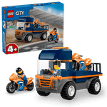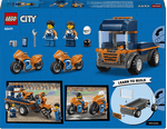 ¡Prepárate para participar en divertidas carreras sobre 2 ruedas con el set LEGO® City Camión de Transporte de Motos! Da un vistazo al fantástico camión plataforma con gruesas llantas y fíjate en su llamativa combinación de colores en azul y naranja. Coloca la rampa y carga las 2 motos. Luego entra en la cabina y conduce hasta la pista. Agárrate fuerte, ¡porque estas máquinas corren muchísimo!