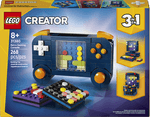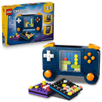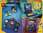 ¡Viaja atrás en el tiempo para jugar con 3 juguetes LEGO® retro! Construye una consola de videojuegos con 2 controles y 2 botones móviles, y elige entre 3 cartuchos de juego cuál vas a insertar. Después, convierte el modelo en una computadora con monitor, teclado, disco para colocar adentro y ratón, o transfórmalo en una maquinita. ¿Qué vas a construir? ¡Tú decides con este set “3 en 1”!