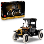¡Emprende un viaje nostálgico con este auto LEGO Icons para adultos! Reproduce la elegancia del Ford Model T de la década de 1910 con su carrocería negra, detalles dorados y rines altos de rayos con llantas delgadas de goma blanca. Esta réplica incluye elementos como el toldo de tela plegable y el parabrisas dividido abatible. Disfruta de una construcción gratificante y exhibe tu creación.