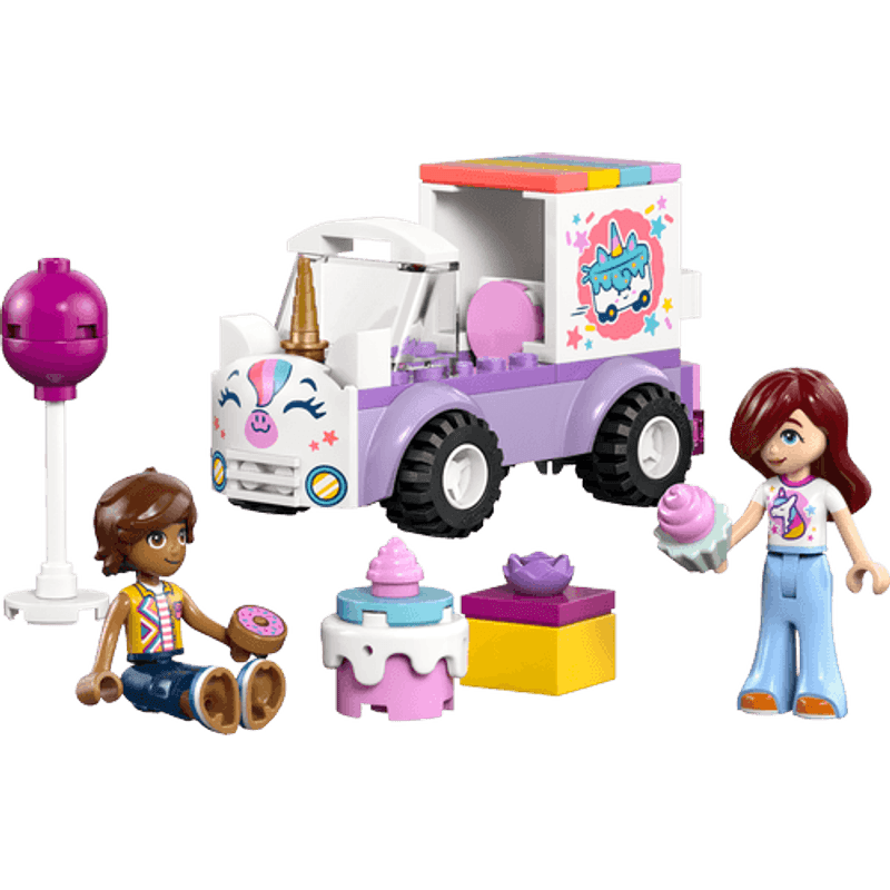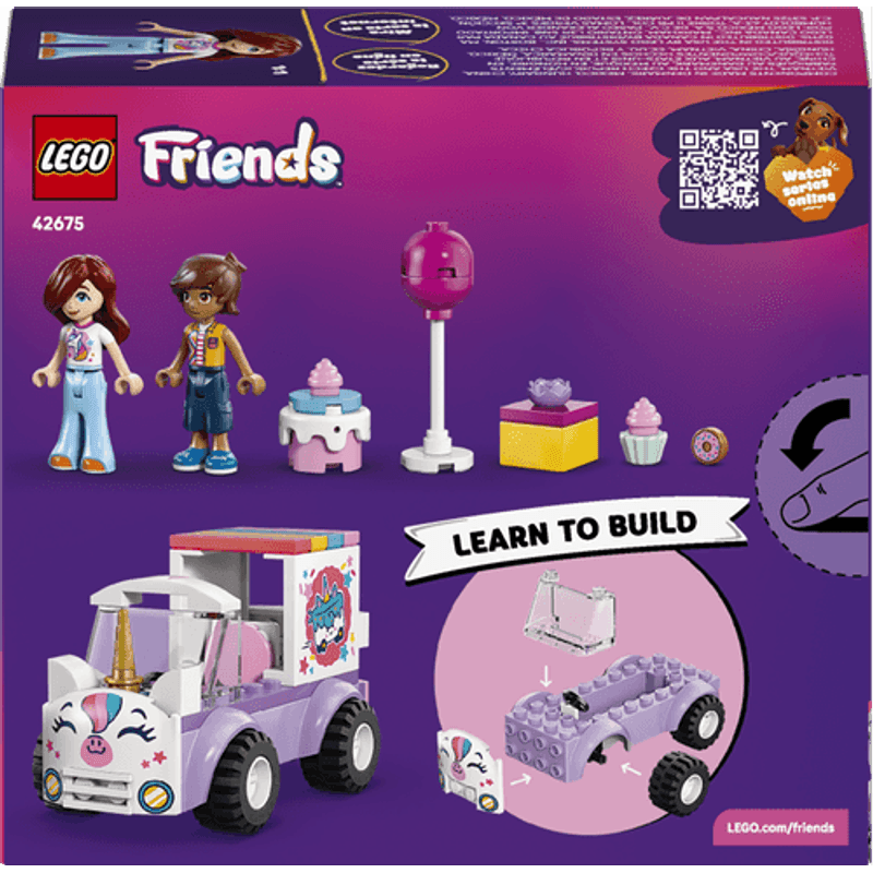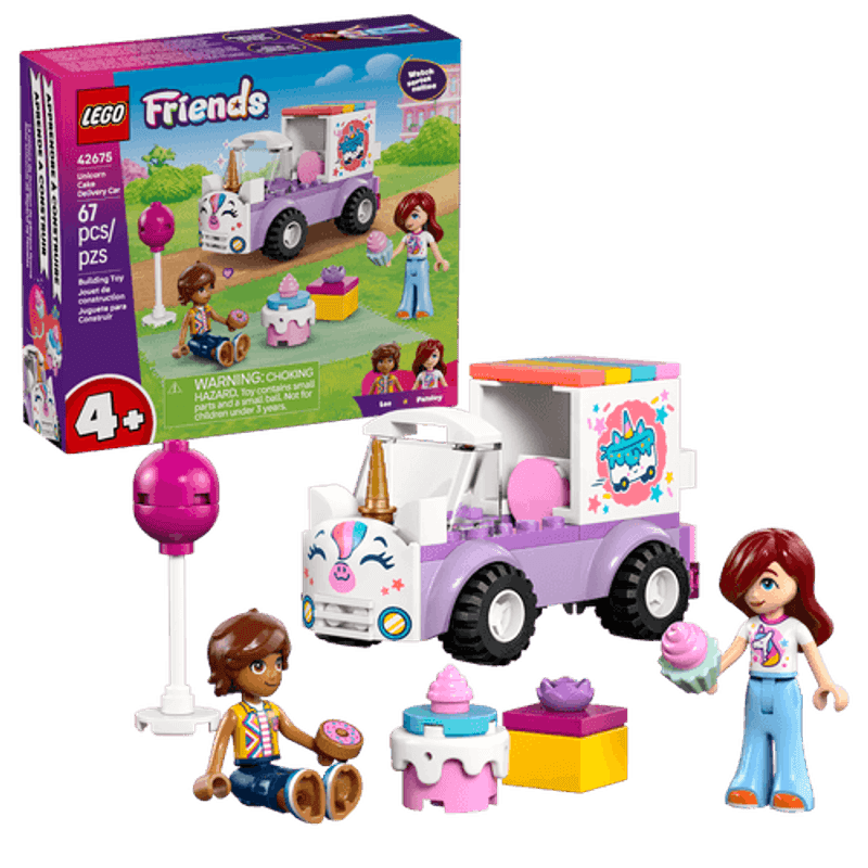 ¡Descubre diversión y sorpresas de cumpleaños con el Auto-Unicornio de Reparto de Pasteles LEGO® Friends! Ayuda a Paisley a colocar el pastel en el vehículo. Después, acércaselo a Leo, que está más que preparado para la fiesta. Mira, Leo agarra un globo y Paisley lleva un unicornio en la camiseta. Abre el regalo y encontrarás la dona de cumpleaños. ¡Qué dulce sorpresa!