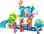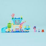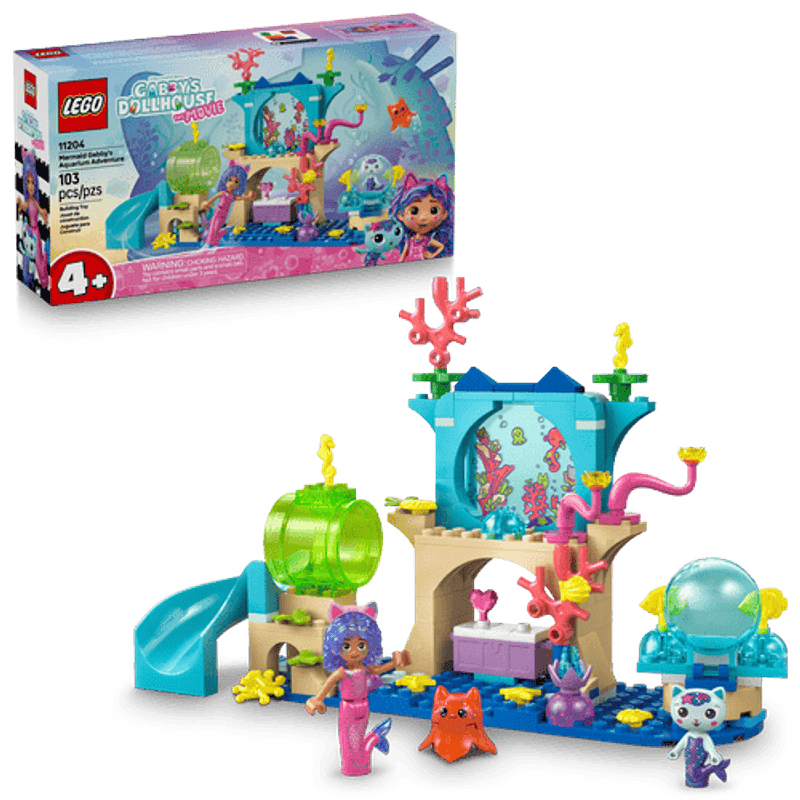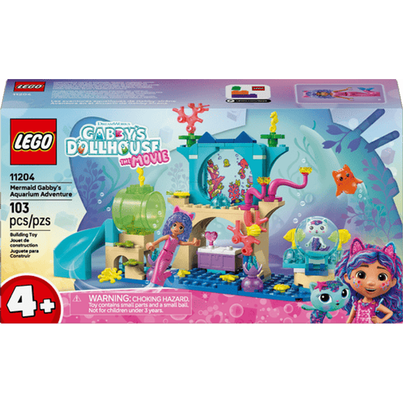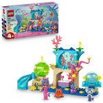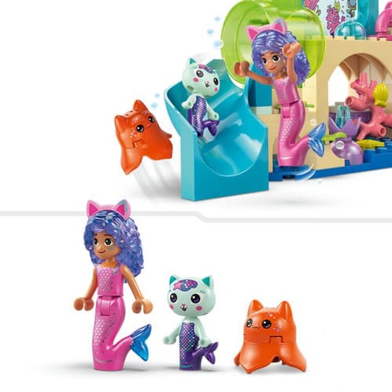 ¡Sumérgete en la aventura submarina de Gabby con Gatirena y Medusa multicolor! Gabby lleva su cola de sirena y está lista para explorar el colorido acuario, lleno de conchas, plantas y adorables animales marinos. Salpica tú también mientras te deslizas con ellas por el tobogán y flotas adentro de una gran burbuja, y luego mueve el coral para encontrar un cofre del tesoro, ¡como en la película!
