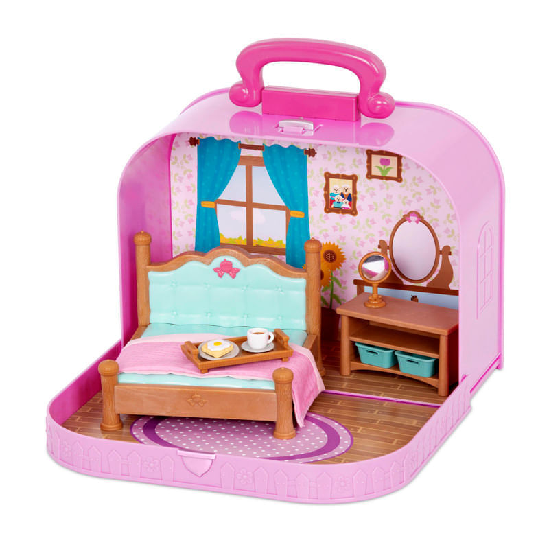 ¡Lleva a tus Li’l Woodzeez a todas partes con el lujoso juego de maleta de viaje y dormitorio! Este set de juguetes incluye a Kya el león y Lizz el elefante, así como muebles en miniatura, incluyendo una cama, una cómoda y un espejo de mesa. También hay comida de juguete, ¡así que tus personajes de Li’l Woodzeez pueden disfrutar de café, tostadas y huevos para el desayuno! El interior de la maleta está bellamente decorado, con mucho color y pequeños detalles que lo hacen parecer un hogar real para tus figuritas de juguete. ¿Listo para salir a la carretera? ¡Dobla tu juego en la práctica maleta y lleva a tus pequeños amigos contigo!