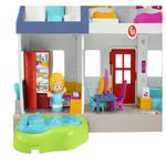 Los niños pueden estar a cargo de sus tardes de juego y pijamadas con el set de juego Little People® Casita de los Amigos Fisher-Price®. Este set de juego interactivo está repleto de diversión. Los niños pueden mover las 3 figuras de mejores amigos por las habitaciones de la casa, así como por el patio exterior con alberca y el columpio del árbol. Mientras los niños se divierten y crean sus propias historias de juego, también pueden aprender el alfabeto, los números, los opuestos y otros conceptos gracias a la tecnología de Aprendizaje por Etapas®. Presiona el botón del mundo para seleccionar un idioma: español, portugués brasileño o inglés.