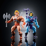 Este nostálgico paquete doble de Masters of the Universe Origins celebra el 80º aniversario de Mattel ¡y realmente da un golpe de emoción! Incluye figuras retro de He-Man y Skeletor con acción de golpe. Este clásico enfrentamiento entre héroe y villano está diseñado a escala de 5.5 pulgadas, con su articulación original y cabezas blanditas al estilo vintage. Ambos cuentan con divertidos movimientos de “giro y golpe”, ideales para recrear épicas batallas del bien contra el mal. Skeletor viene con una espada, un báculo del caos, armadura de pecho y armadura tipo falda removibles. He-Man incluye una espada, un escudo, un hacha y su característico arnés de pecho removible. ¡Las dos espadas pueden unirse para formar la Espada del Poder! Se incluyen dos mini-cómics vintage. Apto para fans de MOTU y juguetes clásicos, a partir de los 6 años. Los colores y decoraciones pueden variar.