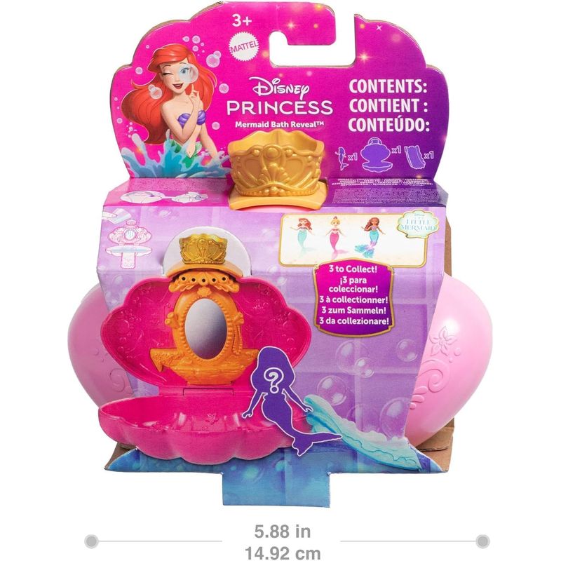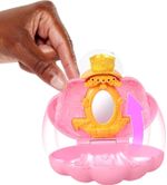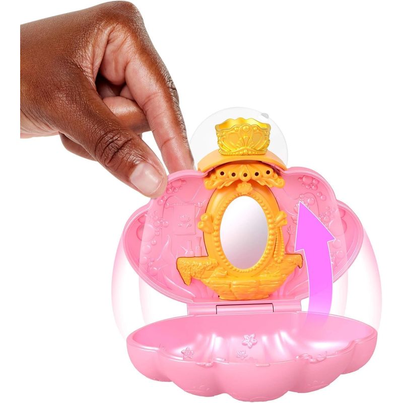 Abre el set de juego en forma de concha para revelar a la muñeca posable de Ariel en su mundo submarino animado o versión live action.