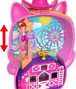 Este adorable Polly Pocket Compact tiene forma de poni y un divertido exterior para vestir, ¡perfecto para niñas que adoran expresar su estilo único! Abre el juego y descubre un fantástico interior de carnaval de rodeo con una micromuñeca y 10 accesorios temáticos.