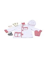 ¡Ven y llévatelo! Este set tiene todo lo que un aspirante a chef necesita para preparar deliciosos platos. El disfraz para jugar incluye una chaqueta de chef con bolsillos grandes y detalles en rojo vichy, gorro de chef, manopla para el horno, tres utensilios de madera, un juego de cucharas medidoras de plástico y una etiqueta con el nombre para que los niños puedan personalizar su atuendo.