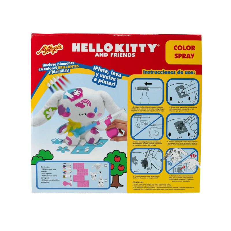 ¡Este no es un peluche cualquiera, es una revolución en felpa! Directo desde el universo kawaii con parada obligada en el laboratorio de creatividad de Mi Alegría, llega un peluche que no solo se abraza... ¡se diseña! Hello Kitty y sus amigos están listos para dejar que desates tu estilo con el poder del color spray. ¿Quieres que tenga un moño arcoíris? ¿Pintarle un look punk o pastel goth? Go for it. Aquí, tú eres el artista, el diseñador y el genio loco detrás del estilo.