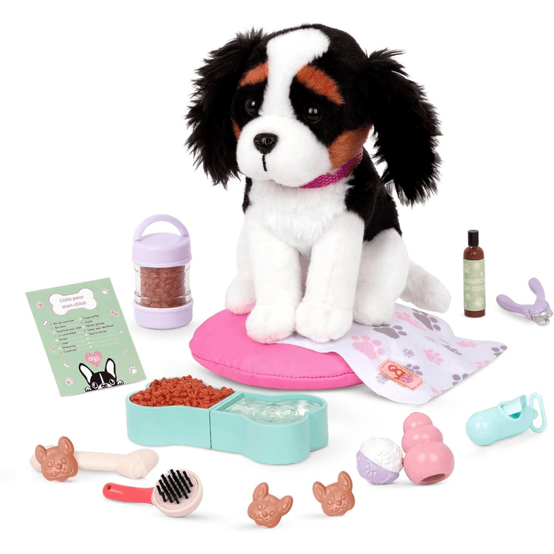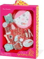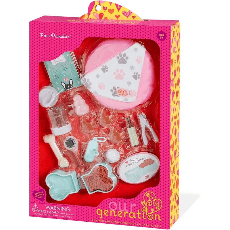 ¡Desata aventuras fantásticas con el set Cuidado y Juego de Perritos de Our Generation para muñecas de 18 pulgadas! Estos accesorios de peluche permiten a los aficionados a los animales cuidar dulcemente de su cachorro favorito de nariz a cola. Prepara el lugar perfecto para que tu mejor amigo peludo sueñe, coma y se sienta consentido con la linda cama para mascotas. Está hecha de suave felpa rosa para que los cachorros estén cómodos con estilo. ¿Listo para un día de paseo? La correa para perros se engancha al collar mientras los niños llevan a sus cachorros a todas partes. Además, accesorios temáticos como el boomerang, el hueso, la pelota que hace ruido, los cuencos de comida y agua, golosinas, cepillo y cepillo de dientes añaden a la narración de historias. Es una adición divertida a los sets de mascotas y colecciones de muñecas. Los accesorios de muñecas Our Generation son un gran regalo para niños de 3 años en adelante (partes pequeñas), fomentando que imaginen sus propias historias únicas.