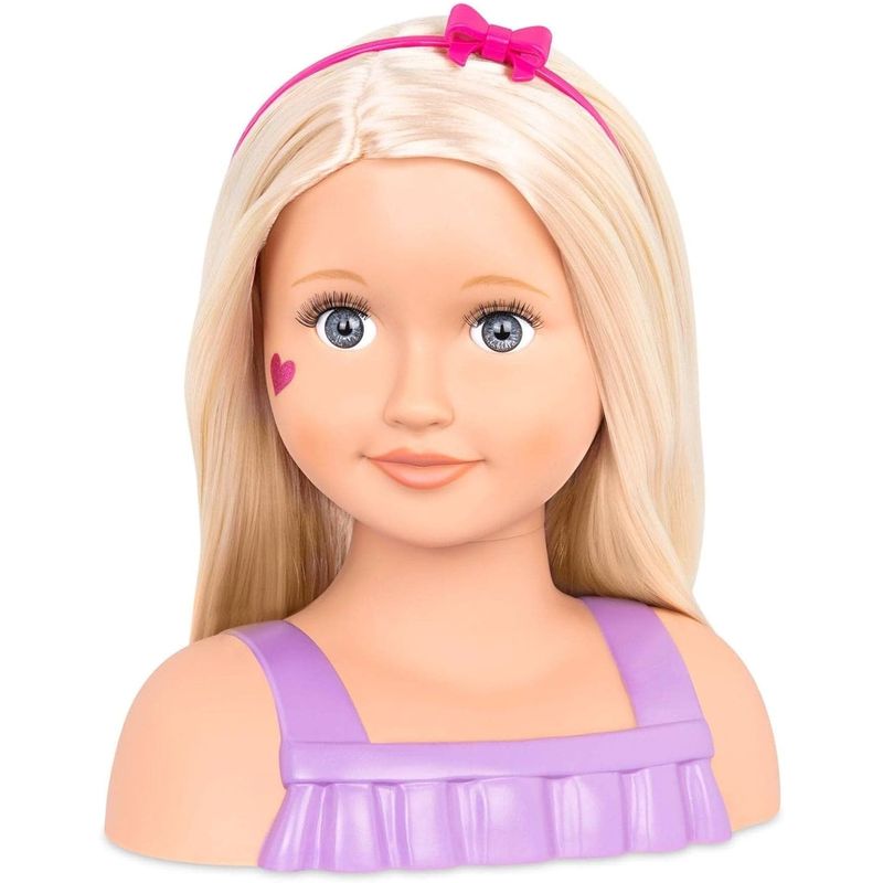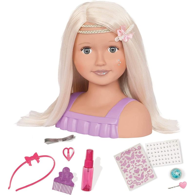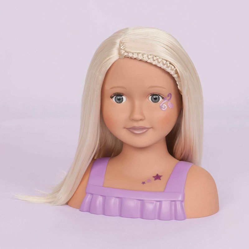 La Cabeza de Muñeca Para Peinar Trista de Our Generation permite practicar peinados y estilos. Incluye accesorios para crear looks únicos y fomentar la creatividad en los niños.