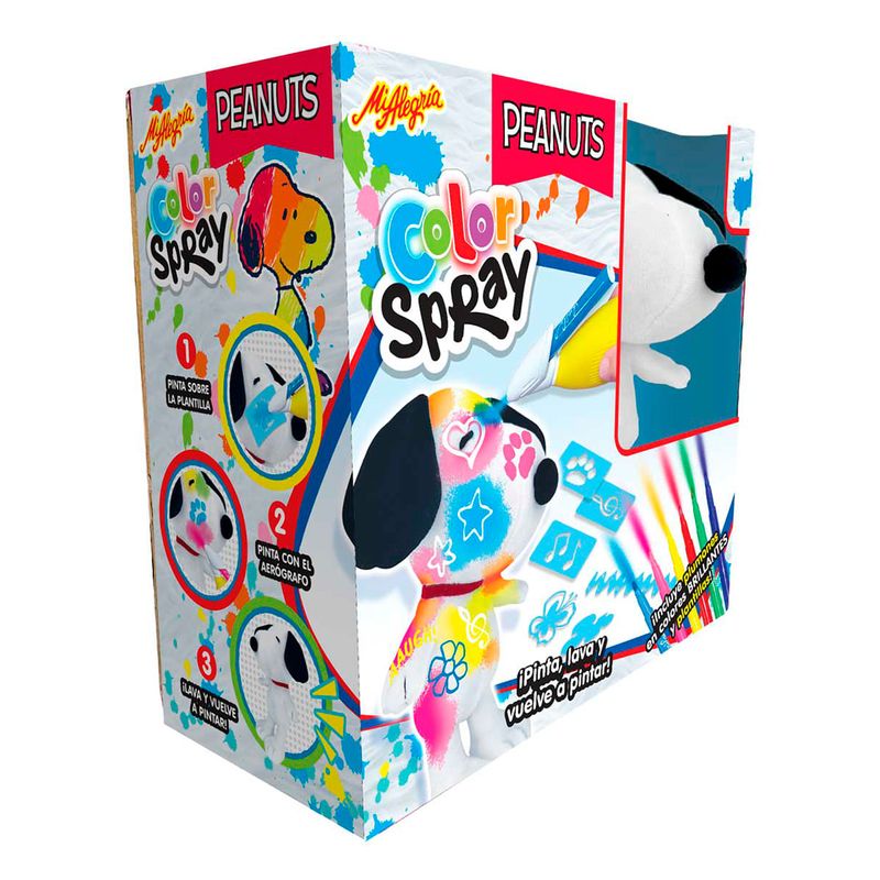 ¡Dale vida y estilo a tu Snoopy! Con el Peluche Snoopy Color Spray Mi Alegría podrás personalizar a tu personaje favorito con colores vibrantes y diseños únicos. Usa los sprays incluidos para dejar volar tu creatividad y decora a Snoopy una y otra vez, ya que su tela especial permite lavarlo y comenzar de nuevo. ¡Cada diseño será una nueva aventura! Perfecto para niños y niñas que aman el arte, la imaginación y, por supuesto, a Snoopy. Un juguete creativo, tierno y divertido que combina el cariño de un peluche con la magia de expresarte sin límites..