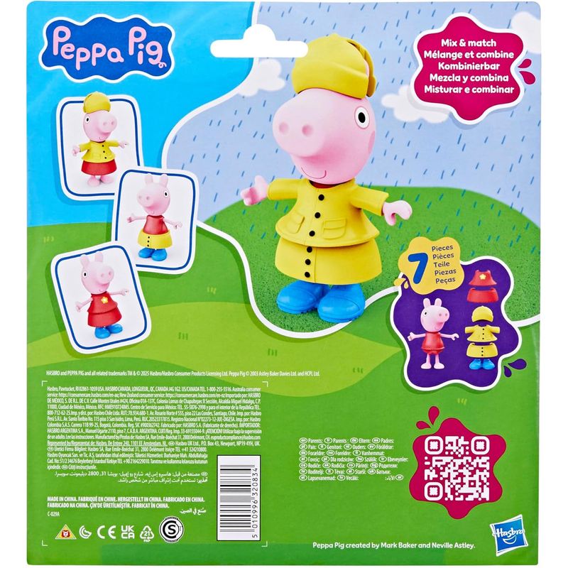 ¡Llueva o brille el sol, ¡la figura Peppa Rainy Day está lista para jugar con estilos divertidos! Los niños y niñas pueden vestir a la figura de Peppa con los 6 accesorios, que son fáciles de poner, para las aventuras cotidianas y los días de lluvia imaginarios (¿quién quiere saltar en charcos de lodo imaginarios?). La figura mide 15 cm. ¡Los pequeños pueden ser creativos y combinar las piezas para inventar divertidas combinaciones! Añade aún más opciones de combinaciones al juego con más figuras basadas en la serie Peppa Pig (cada una se vende por separado; sujeto a disponibilidad). Estos juguetes de Peppa son regalos divertidos para quienes adoren los sets de juego de Peppa Pig, los peluches de Peppa Pig o las muñecas para vestir. Edad recomendada: A partir de 3 años.