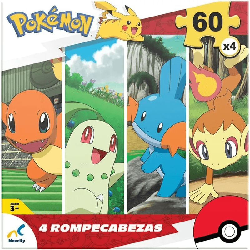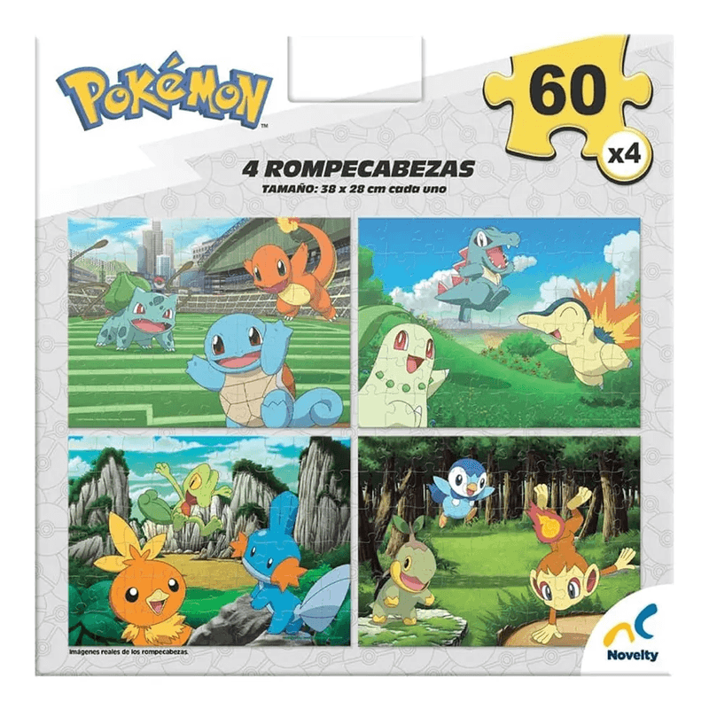 Rompecabezas 4 en 1 con diseños de Pokémon, ideal para fans de todas las edades. Incluye cuatro rompecabezas con diferentes niveles de dificultad y piezas de alta calidad con gráficos vibrantes de tus Pokémon favoritos. Perfecto para disfrutar en familia o como actividad individual, este set fomenta la concentración, la coordinación y el pensamiento lógico. Cada rompecabezas ofrece una experiencia divertida y desafiante, ideal para coleccionistas y amantes del mundo Pokémon.