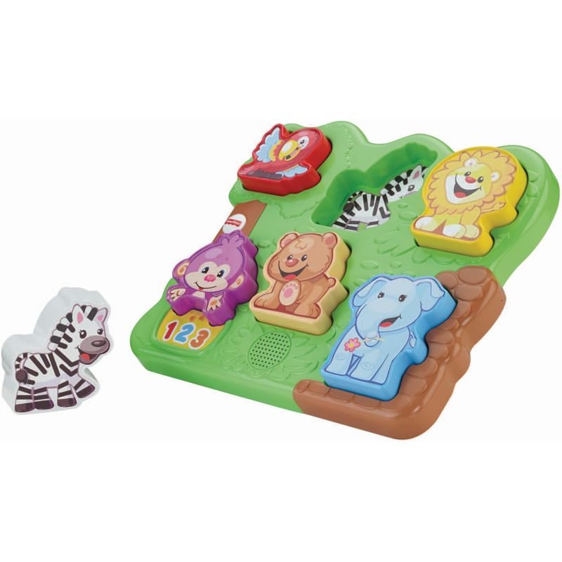 Explora el mundo animal con el Rompecabezas Zoológico de Fisher-Price. Con piezas grandes y coloridas, ayuda al bebé a identificar animales y fomenta la coordinación ojo-mano.